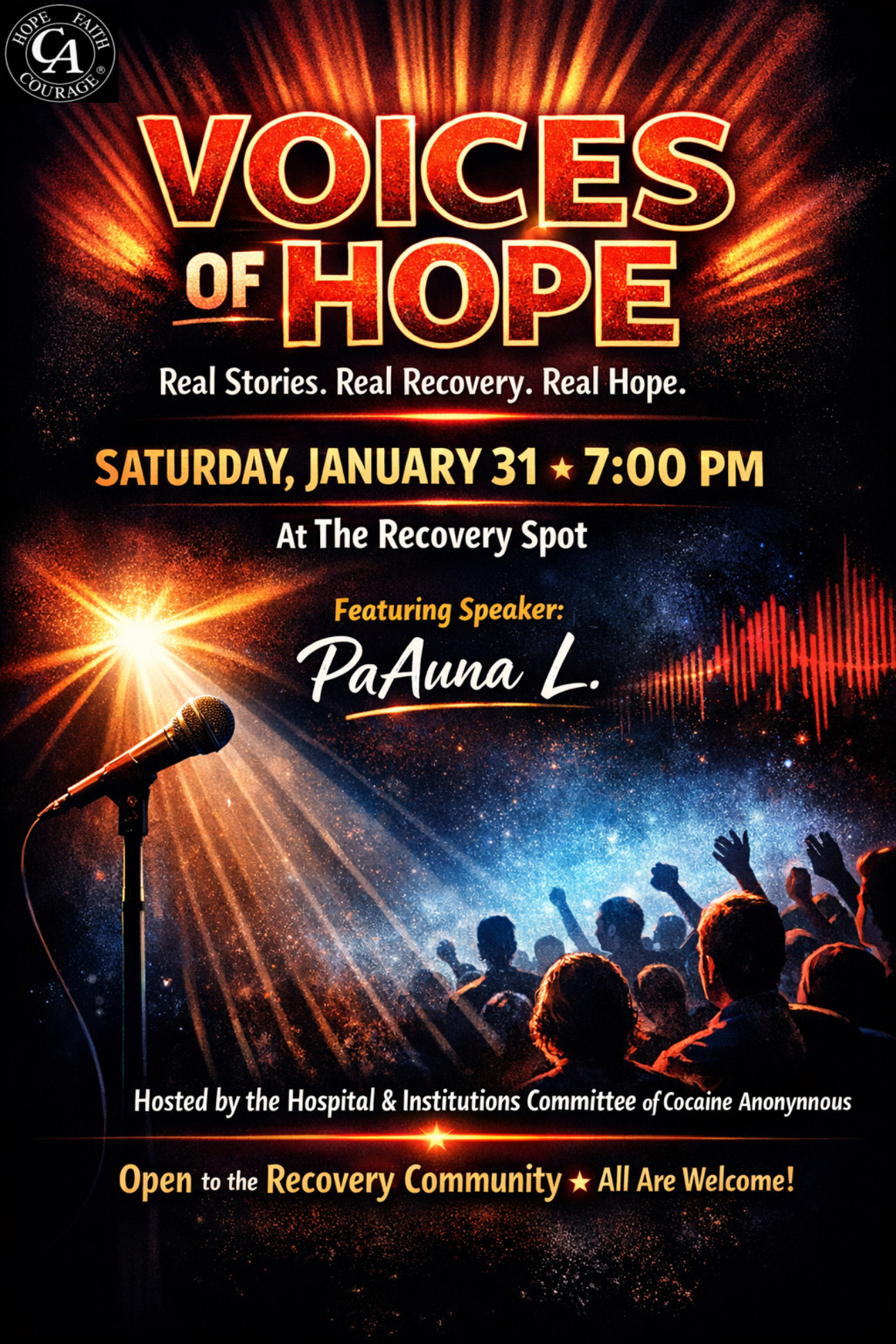 STARTING JANUARY VOICES OF HOPE WILL BE THE LAST SATURDAY OF THE MONTH AT 7P